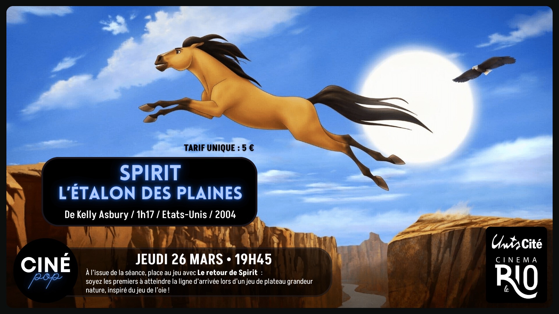 | 26/0319h45 | Spirit, l’étalon des plainesCiné Pop | En savoir plus | Acheter ma place |