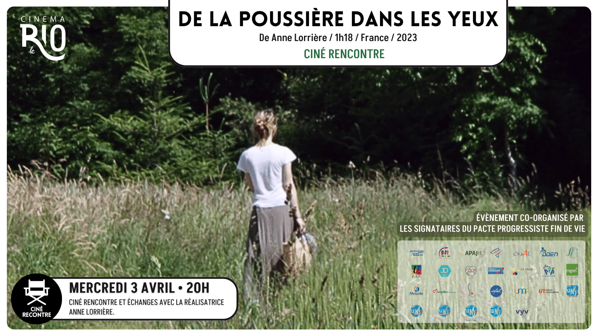 | 03/0420h00 | De la poussière dans les yeuxCiné rencontreCiné rencontre avec la réalisatrice Anne Lorrière - Séance en partenariat avec l'ADMD | En savoir plus | Acheter ma place |