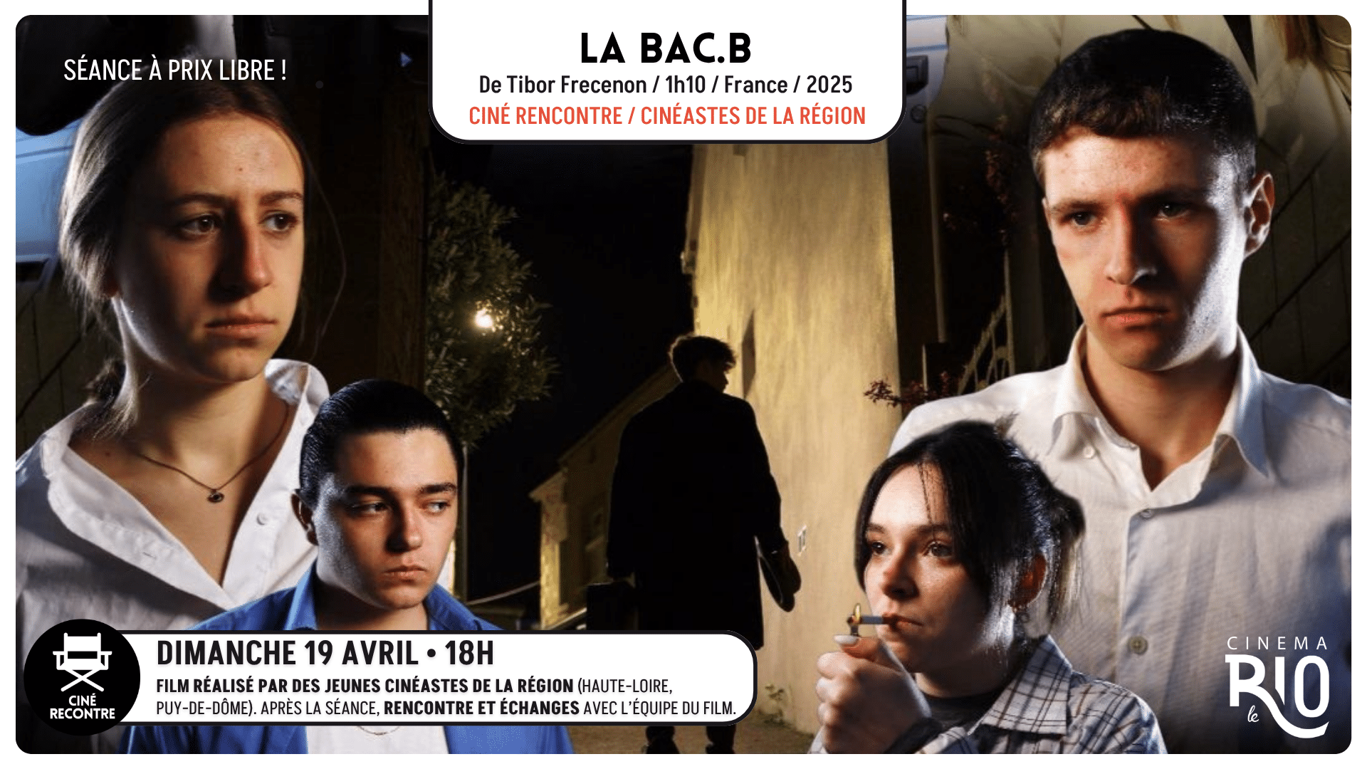 | 19/0418h00 | LA BAC. BCINE RENCONTRE / PREMIER FILMCiné rencontre avec les jeunes cinéastes auvergnats | En savoir plus | |