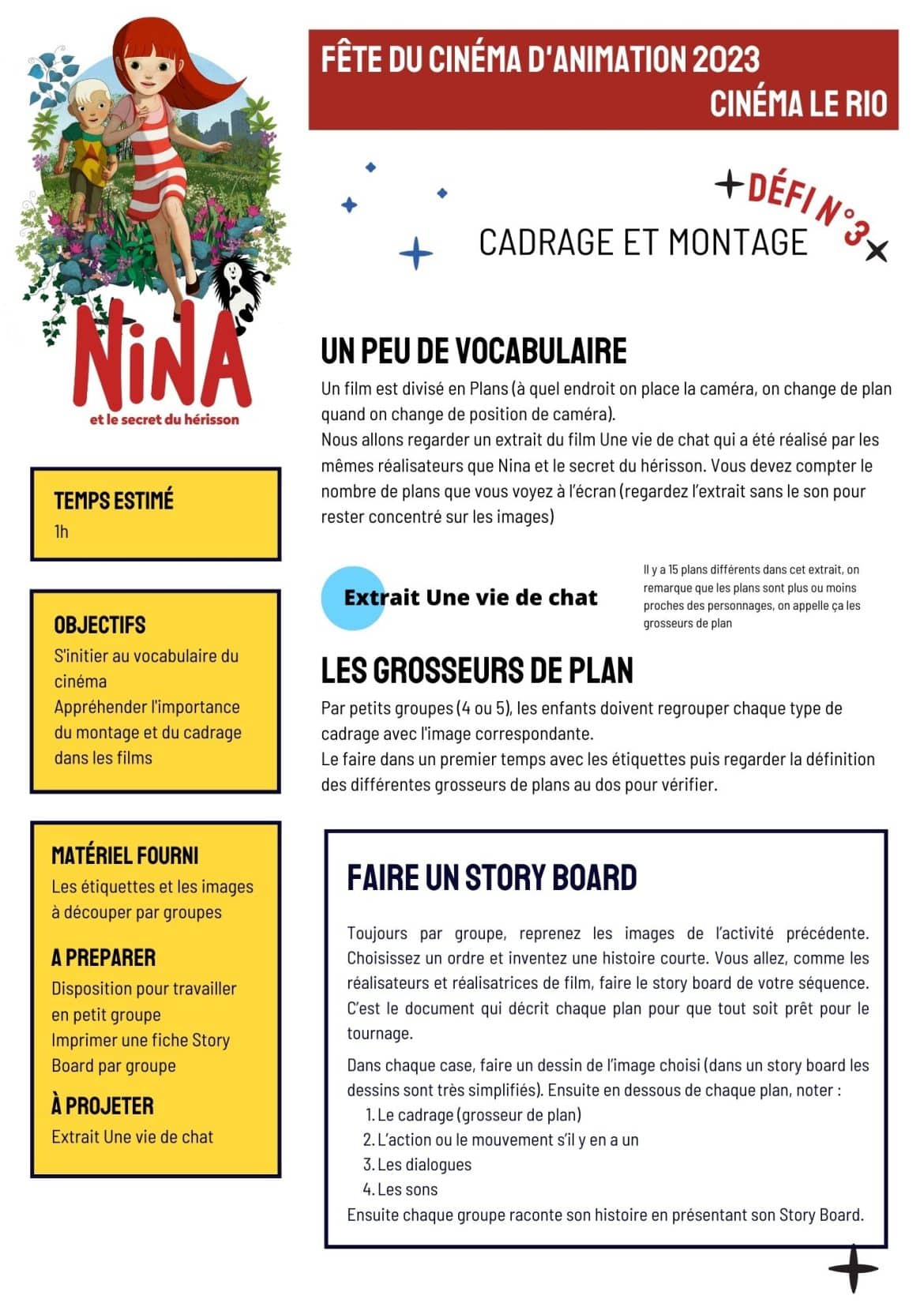 Vous trouverez ci-dessous la fiche du troisième défi autour du montage et du cadrage. La version PDF du document est disponible en téléchargement dans la colonne de droite et donne accès aux documents d’ateliers.